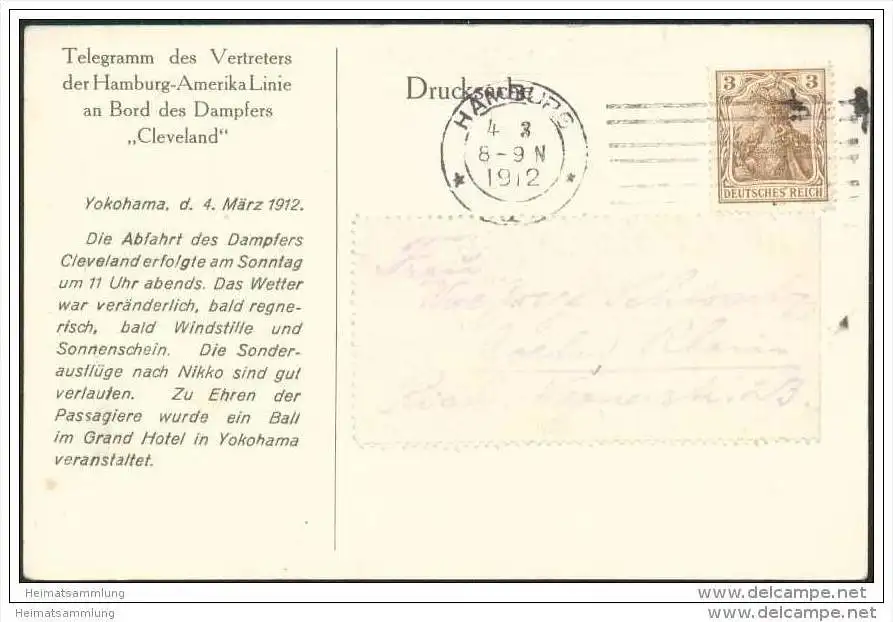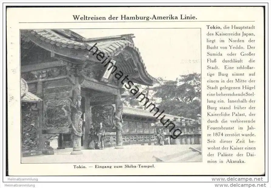 Hamburg-Amerika-Linie - Benachrichtigungskarte an Daheimgebliebene - Tokio - Shiba Tempel (E5645) gel. 1912