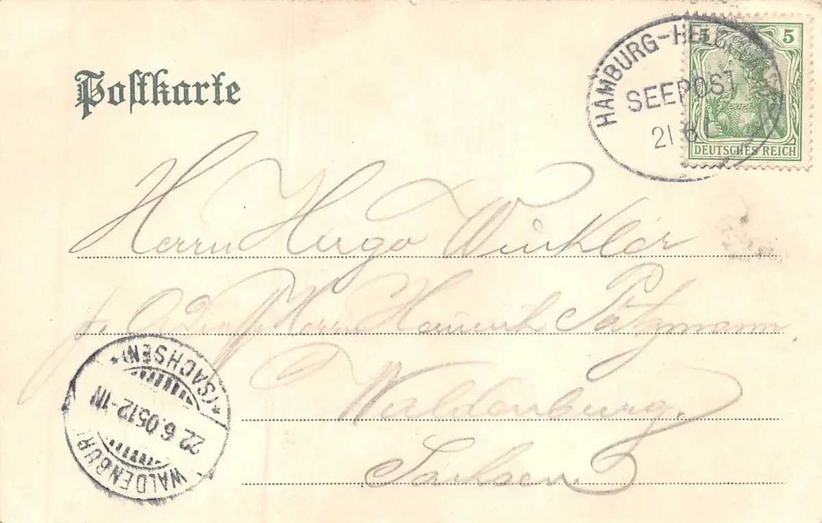 Rückseite: gelaufen 1905 nach Waldenburg (Sachsen)