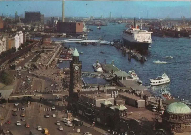 Hamburg - Landungsbrücke mit Queen Elizabeth