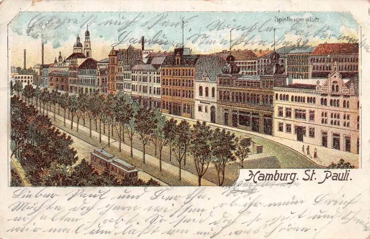 Hamburg St. Pauli Spielbudenplatz Straßenbahn Postkarte AK 1902