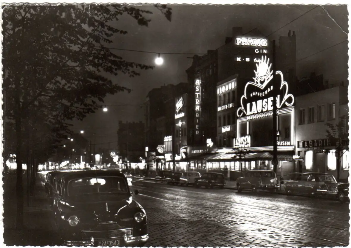 Hamburg St. Pauli m. Nachtbars u. Oldtimer Autos, 1958 gebr. sw-AK