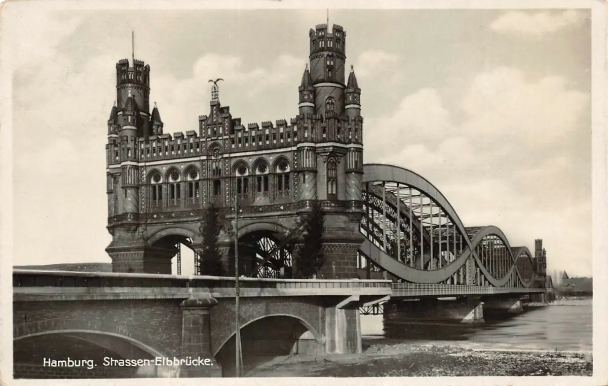 Hamburg Strassen-Elbbrücke Postkarte AK