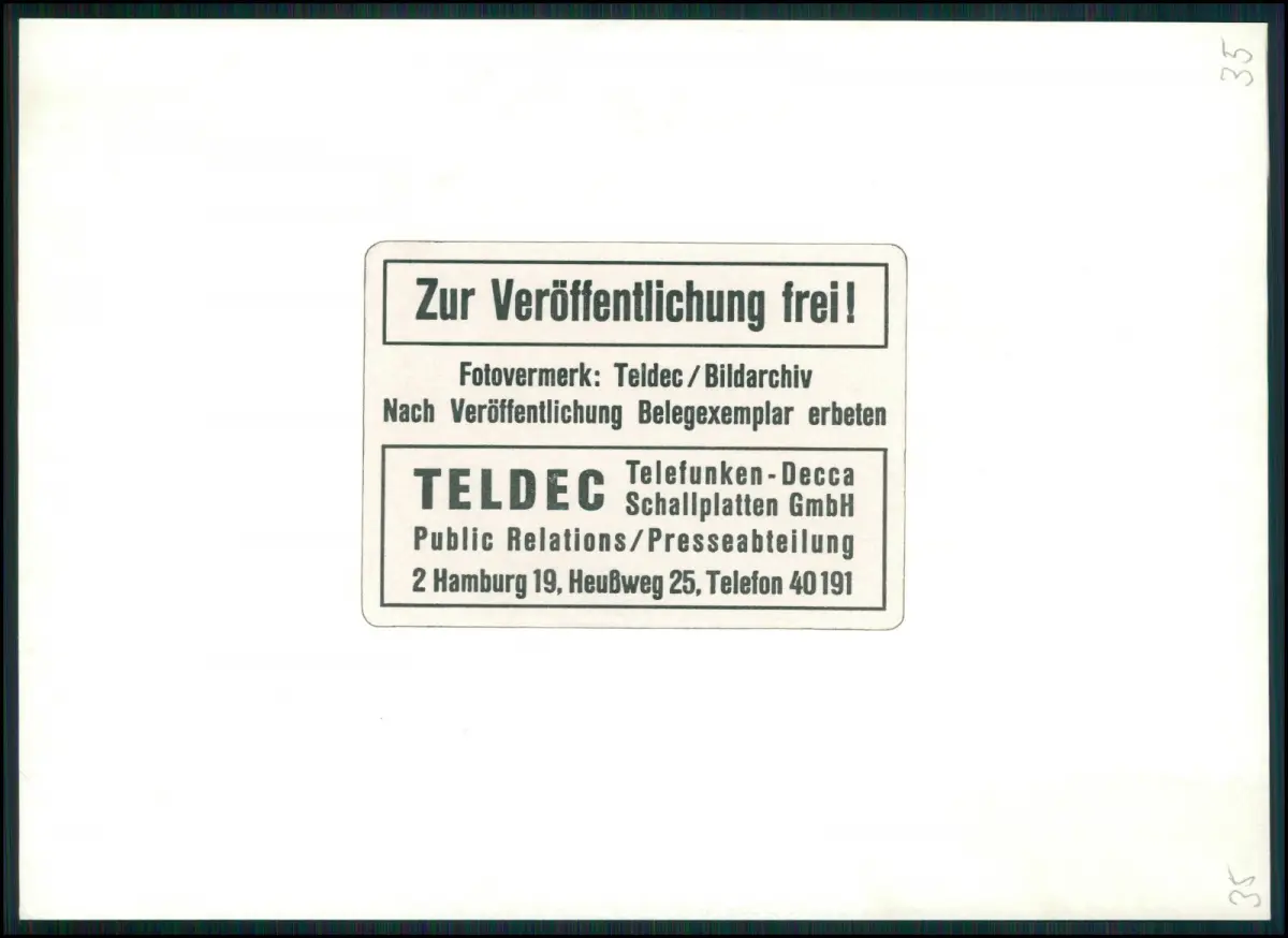 Format: ca. 18 × 13 cm – Schwarzweiß – Originalabzug mit DECCA-Label-Aufdruck.