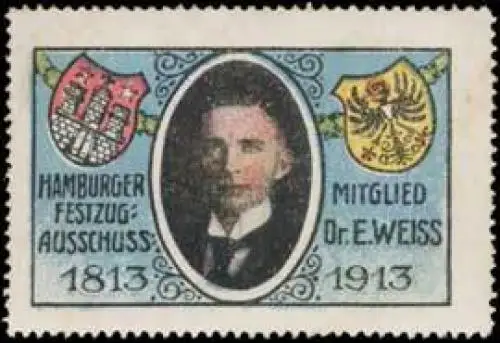 Mitglied Dr. E. Weiss, Serie: Hundertjahrfeier zur Erinnerung an die Befreiung von der Herrschaft der Franzosen, Größe/Zustand: 3x6 , guter Zustand, Original alte Reklamemarke die seinerzeit für die Werbung benutzt wurde