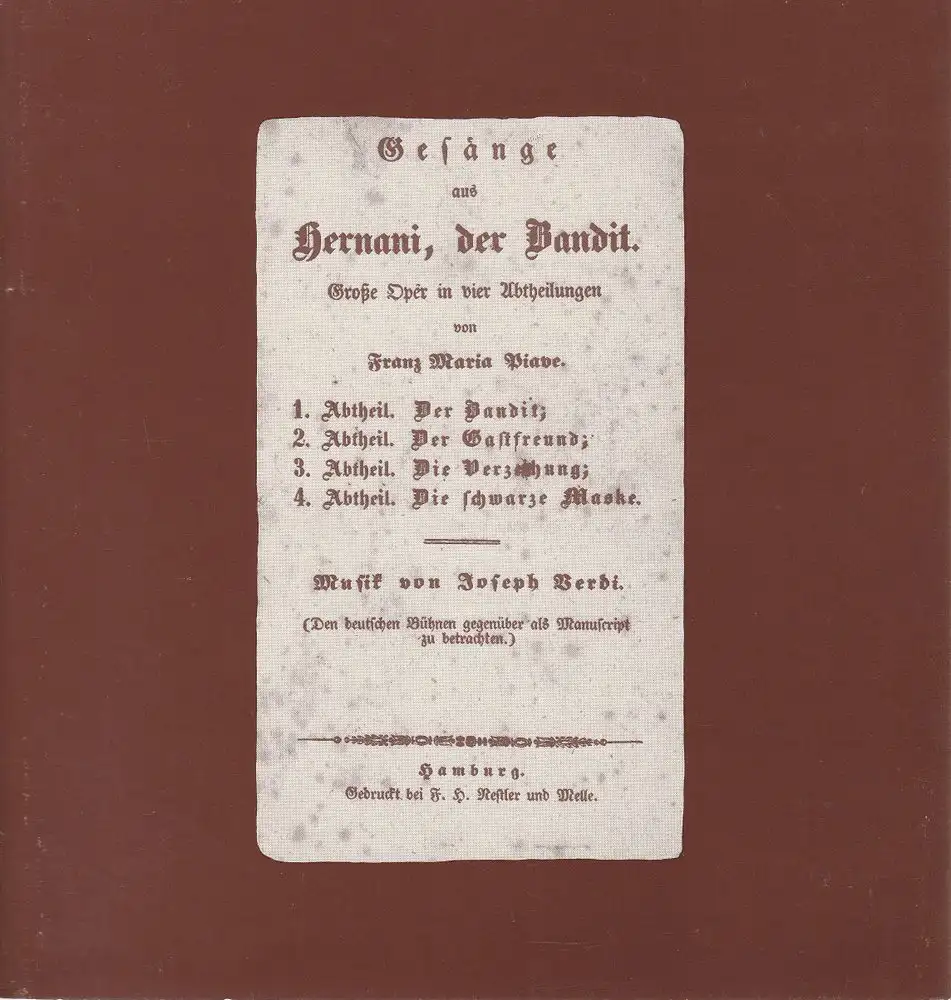 Oper von Francesco Maria Piave nach Victor Hugo. Konzertante Aufführung. In italienischer Sprache. Musikalische Leitung: Nello Santi. Chöre: Jürgen Luhn. Mitwirkende: Vasile Moldoveanu, Antonio Salvadori, Cesare Siepi, Eva Marton, Olive Fredicks, Frieder Stricker, Carl Schultz. - Theaterprogramm, Opernprogramm, Ballettprogramm, Musicalprogramm, Konzertprogramm, Theatermemorabilia, Programmhefte Sammlung, deutsche Theatergeschichte.