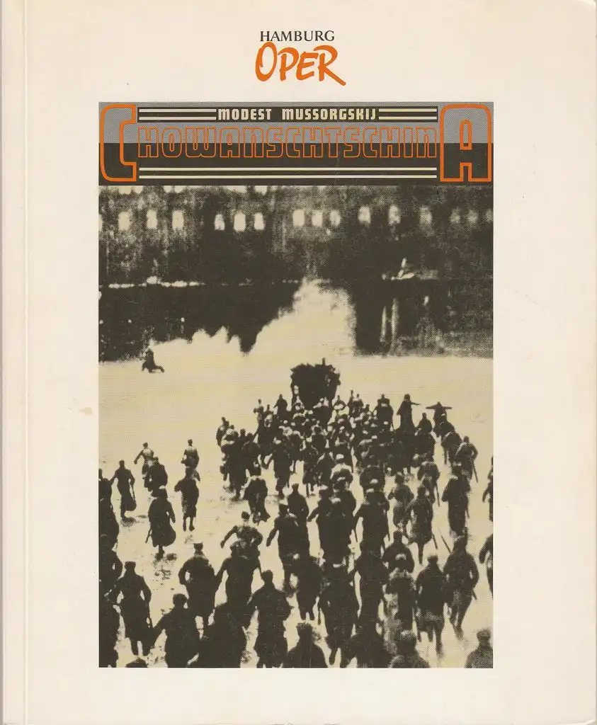 In russischer Sprache. Musikalisches Volksdarama in fünf Akten. Musikalische Leitung: Sebastian Lang-Lessing. Inszenierung: Harry Kupfer. Bühne: Hans Schavernoch. Kostüme: Reinhard Heinrich. Choreographie: Roland Giertz. Mitwirkende: Paata Burchuladze, J. Patrick Raftery, Vladimir Bogachov, Ewgenij Demerdjiev, Harald Stamm, u. a. - Theaterprogramm, Opernprogramm, Ballettprogramm, Musicalprogramm, Konzertprogramm, Theatermemorabilia, Programmhefte Sammlung, deutsche Theatergeschichte.