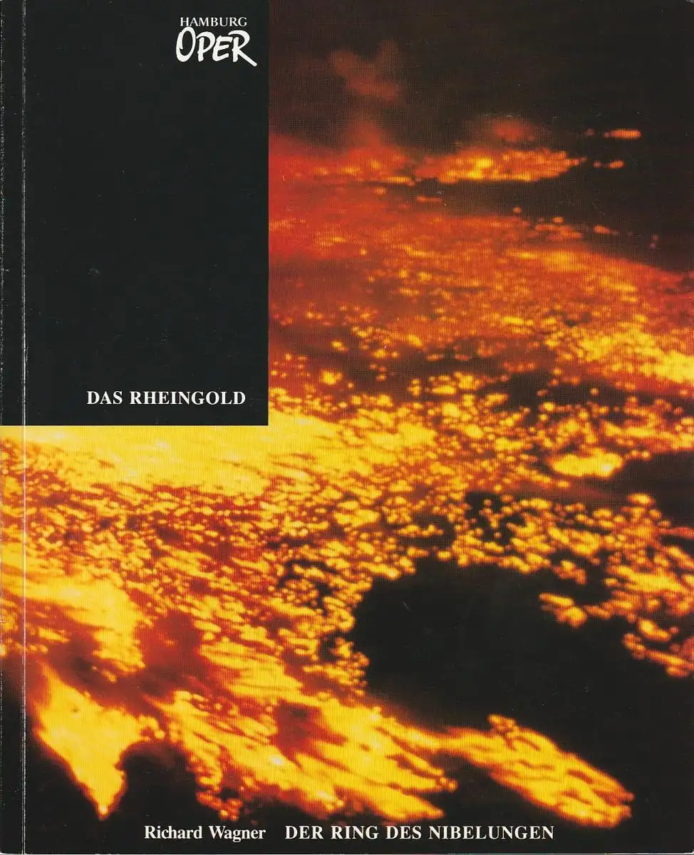 Vorabend zum dem Bühnenfestspiel Der Ring des Nibelungen. Musikalische Leitung: Gerd Albrecht- Inszenierung: Günter Krämer. Ausstattung: Andreas Reinhardt. Regie Mitarbeit und Abendspielleitung: Christian Schuller. Mitwirkende: Hartmut Welker, Florian Cerny, Peter Galliard, Heinz Kruse, Harald Stamm, Aage Haugland, Günter von Kannen, Hanna Schwarz Linda Plech, u. a. Philharmonisches Staatsorchester Hamburg. Bewegungschor und Statisterie der Hamburgischen Staatsoper - Theaterprogramm, Opernprogramm, Ballettprogramm, Musicalprogramm, Konzertprogramm, Theatermemorabilia, Programmhefte Sammlung, deutsche Theatergeschichte.