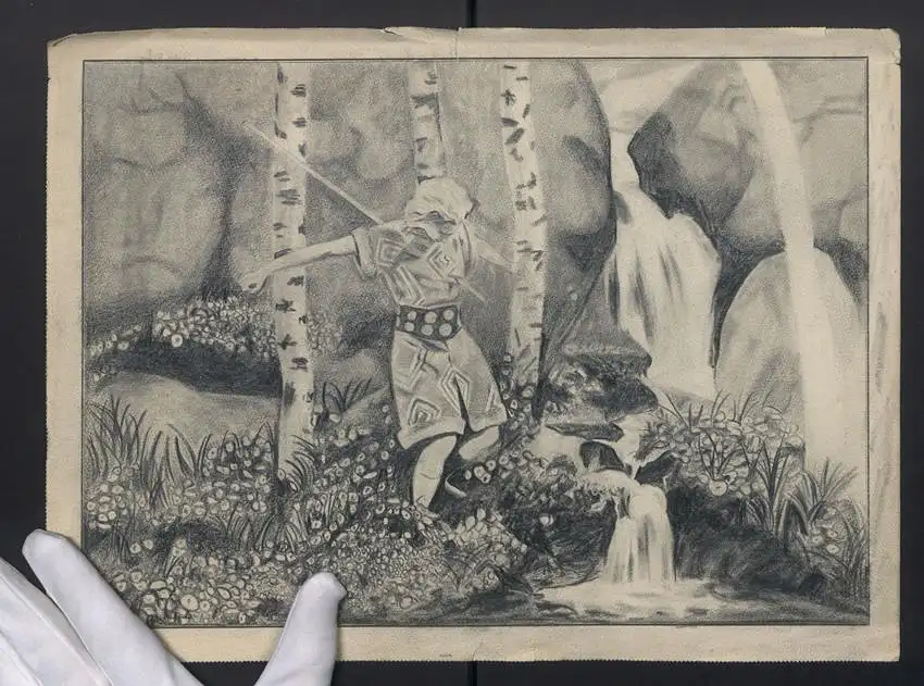 Handzeichnung Nibelungen Sage: Siegfrieds Tod, nach dem UFA Film von Fritz Lang, Handgezeichnet
