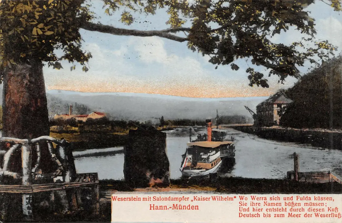 Hann. Münden Weserstein mit Salondampfer "Kaiser Wilhelm" Niedersachsen AK 1920