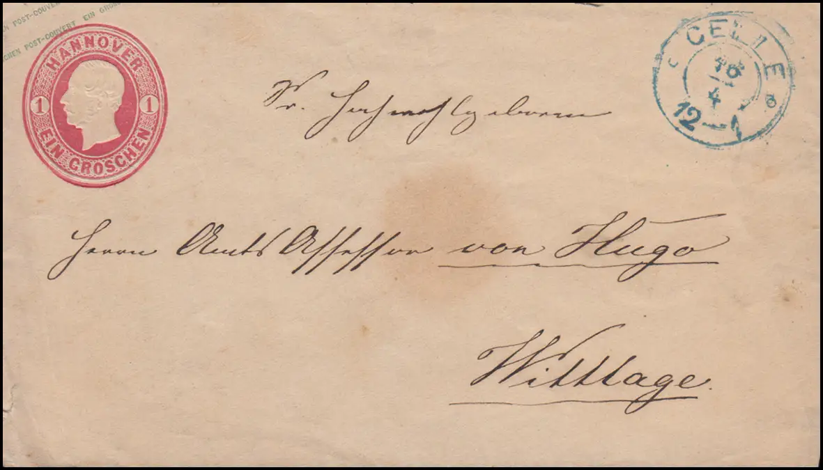 Hannover Umschlag König Georg 1 Groschen von CELLE 16.4. nach WITTLAGE 17.4.