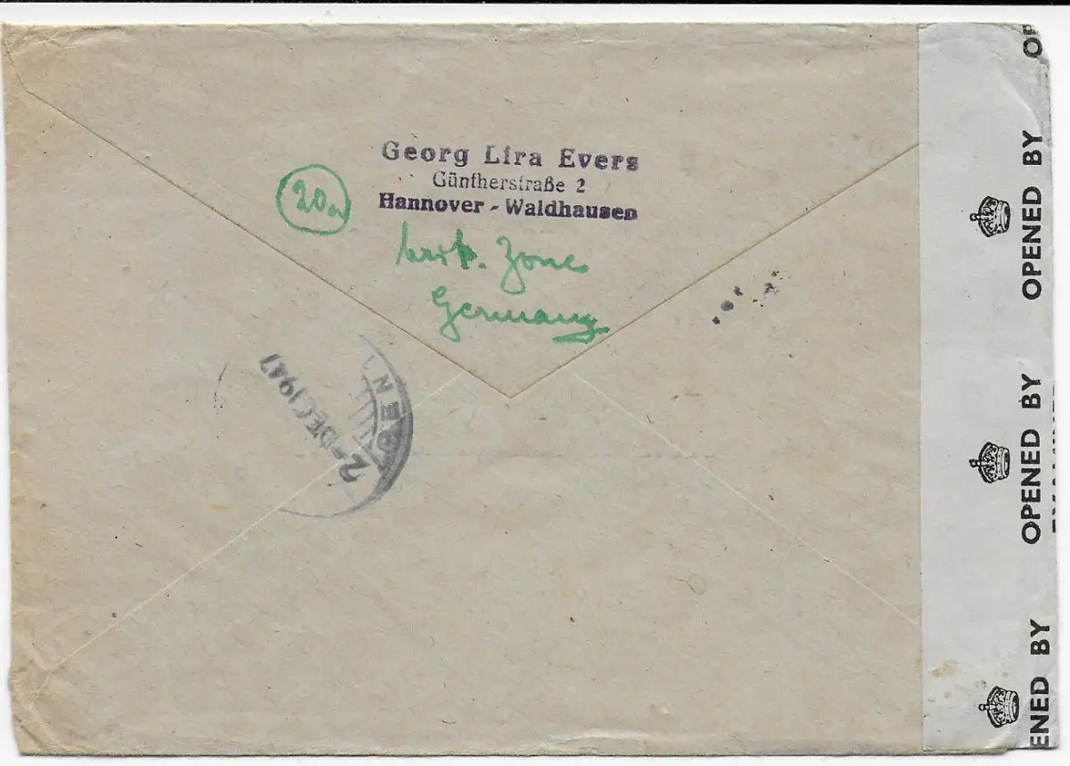 Hannover, Waldhausen nach Sarangan/Java/Indonesien: 1947: Kein Postverkehr