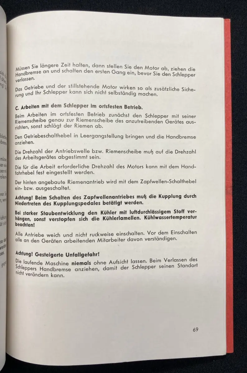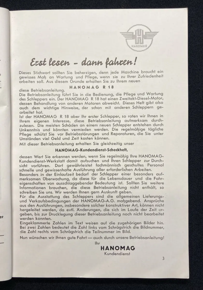 Or-Ausgabe von 1956 mit detailliert aufgelisteter Anleitung zur Inbetriebnahme des oben genannten Radschleppers R 18.-