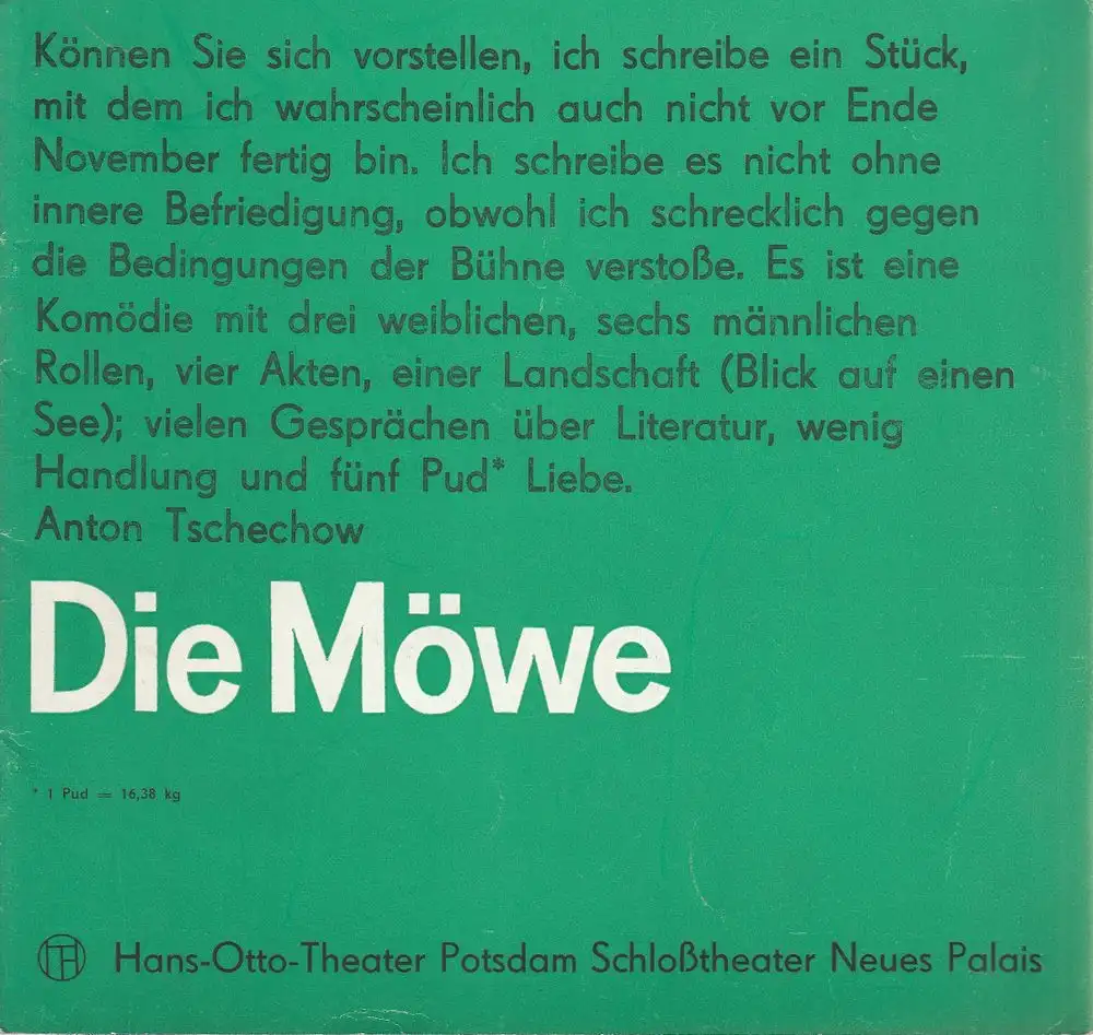 Hans-Otto-Theater Potsdam, Michael Philipps, Gabriele Koerbl: Programmheft Anton Tschechow DIE MÖWE Premiere 29. September 1973 Schloßtheater im Neuen Palais Spielzeit 1973 / 74 Heft 2.
