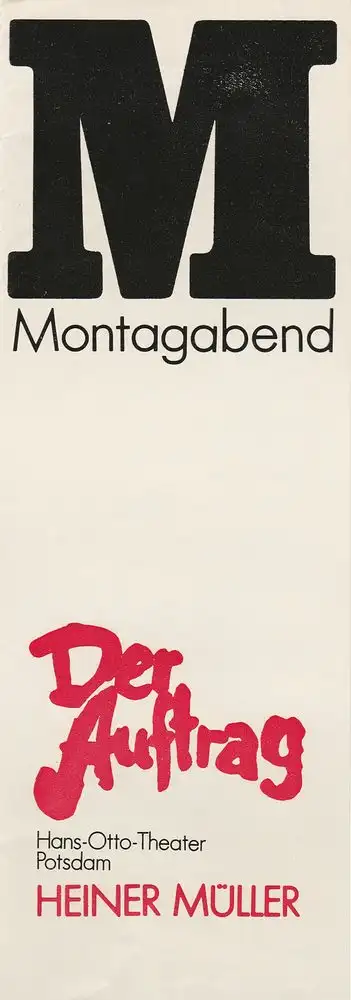 Hans-Ottto-Theater Potsdam, Gero Hammer, Michael Philipps, Sonja Genz: Programmheft Heiner Müller DER AUFTRAG Premiere 19. November 1988 Theater in der Zimmerstraße Spielzeit 1988 / 89 Heft 4.