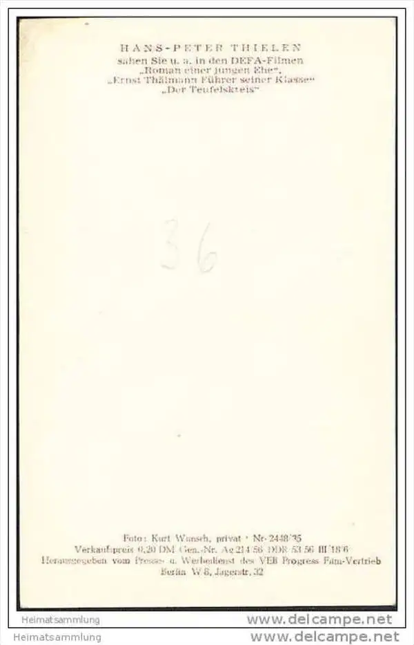 Hans-Peter Thielen - AK ohne rückseitige Einteilung - Verlag VEB Progress Film-Vertrieb Berlin 1956 (G21841) *