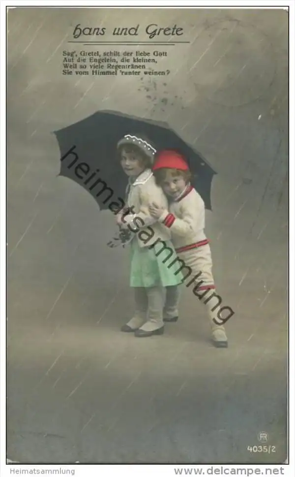 Hans und Grete unter einem Regenschirm - handcoloriert (E14900) gel. 1914