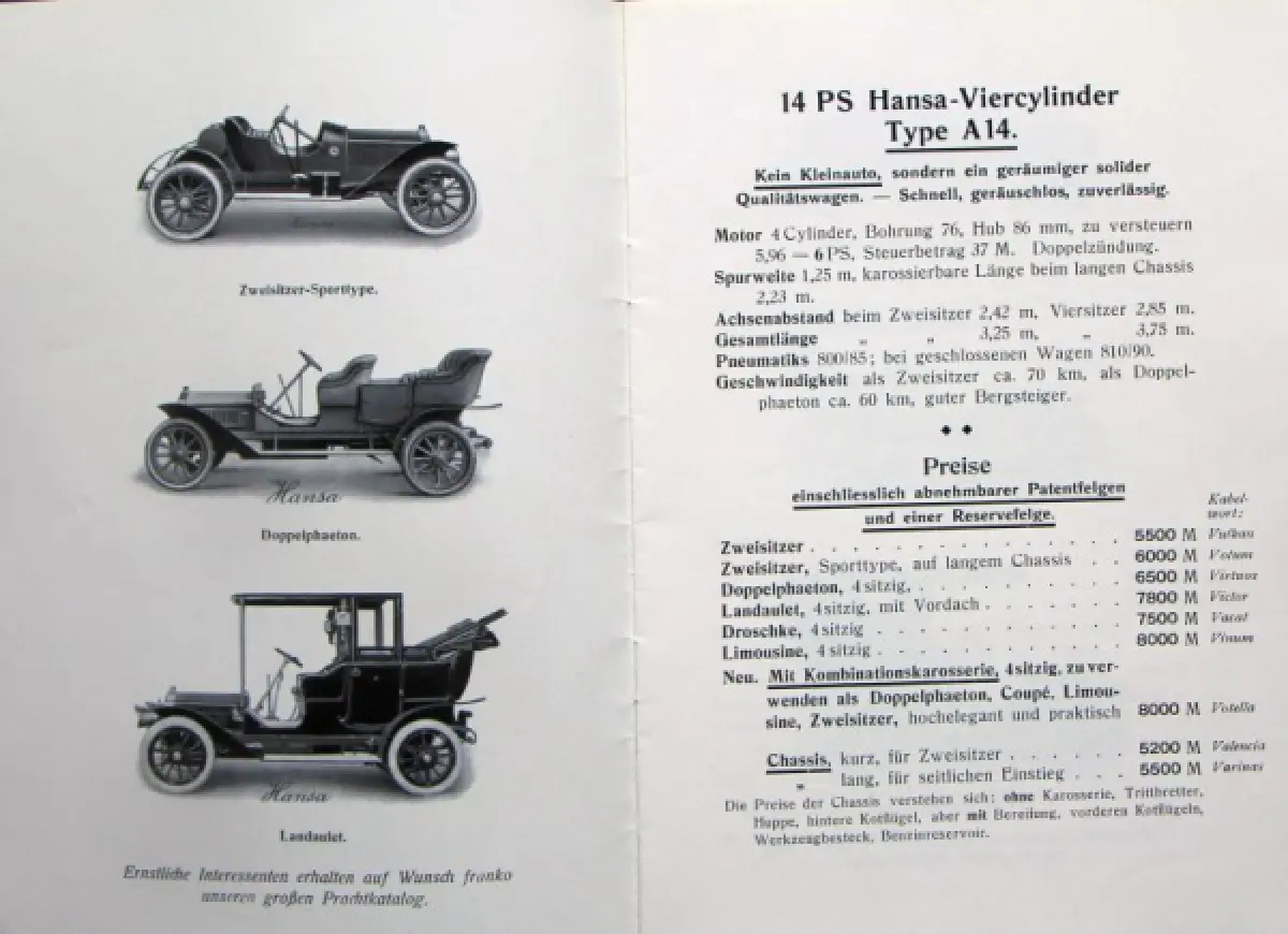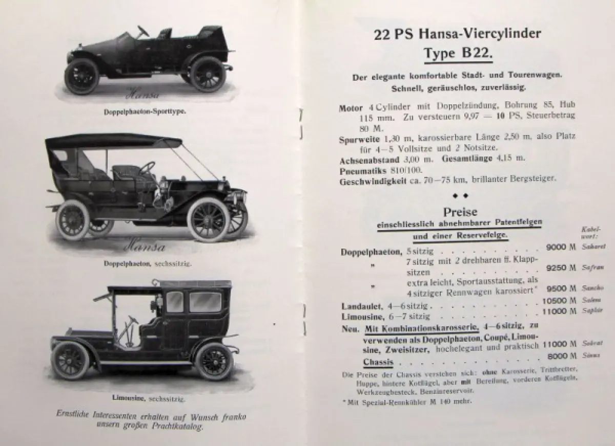 Hansa-Lloyd Modellprogramm 1910 Automobilprospekt (10089)
