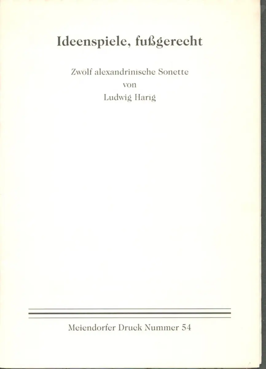 Harig, Ludwig: Ideenspiele, fußgerecht. Zwölf alexandrinische Sonette.