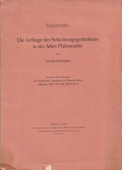 Hartmann, Nicolai: Die Anfänge des Schichtungsgedankens in der Alten Philosophie. Aus den Abhandlungen der Preussischen Akademie der Wissenschaften, Jahrgang 1943 Phil.-hist. Klasse Nr. 3.