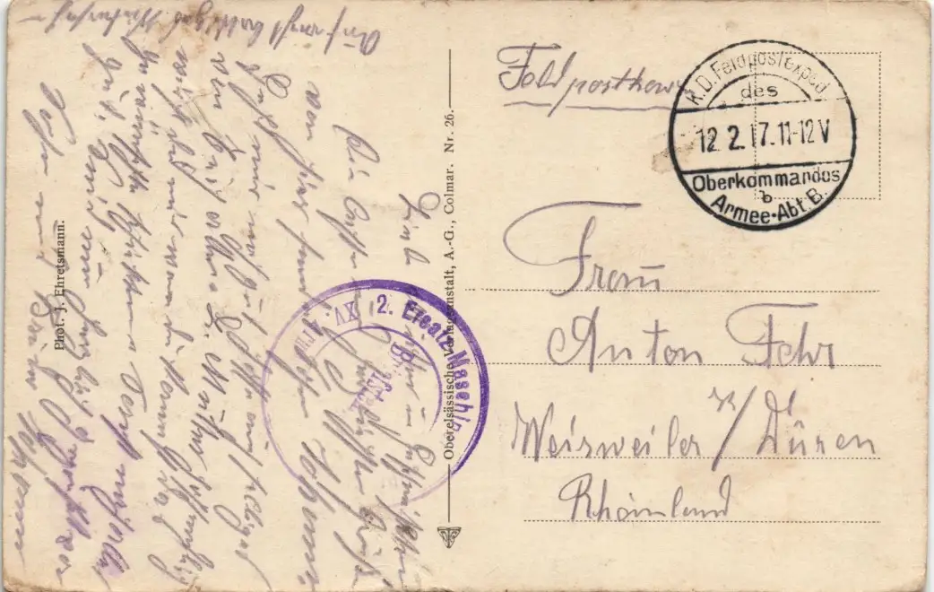 Hartmannsweiler Hartmannswiller Belchen Stemlisberg Kahlenwasen Feldpost 1917