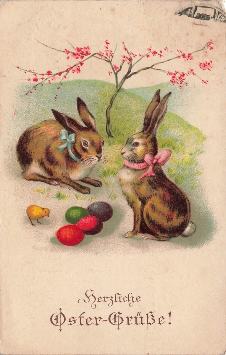 Hasen mit Eier Oster - Grüße Postkarte 1933