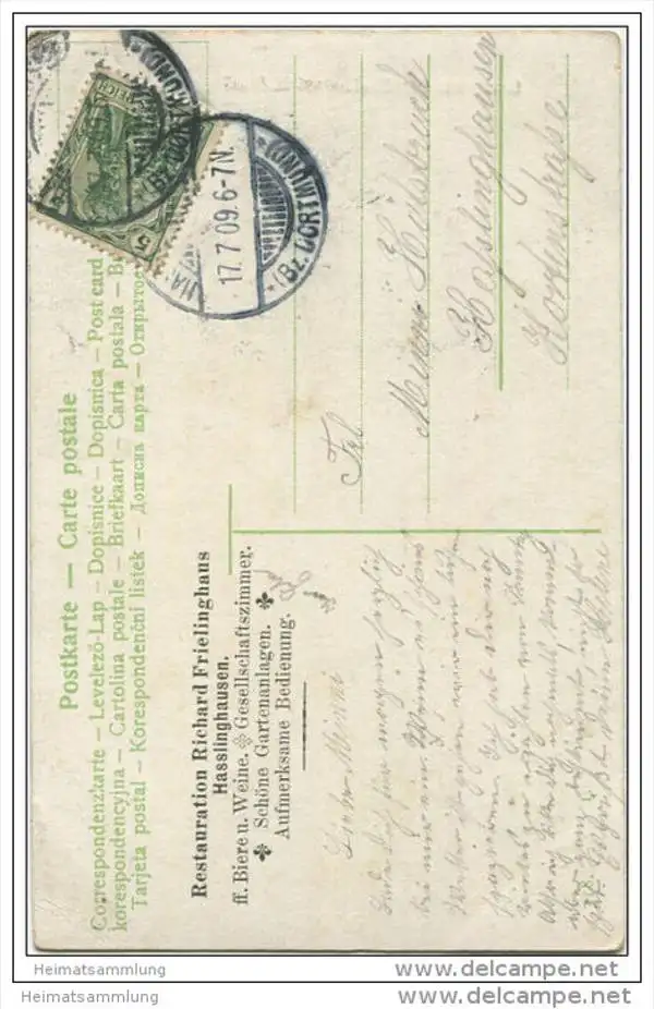 Hasslinghausen - Restauration Richard Frielinghaus - Gebrauchsspuren - Eckknick unten rechts (G33879) gel. 1909