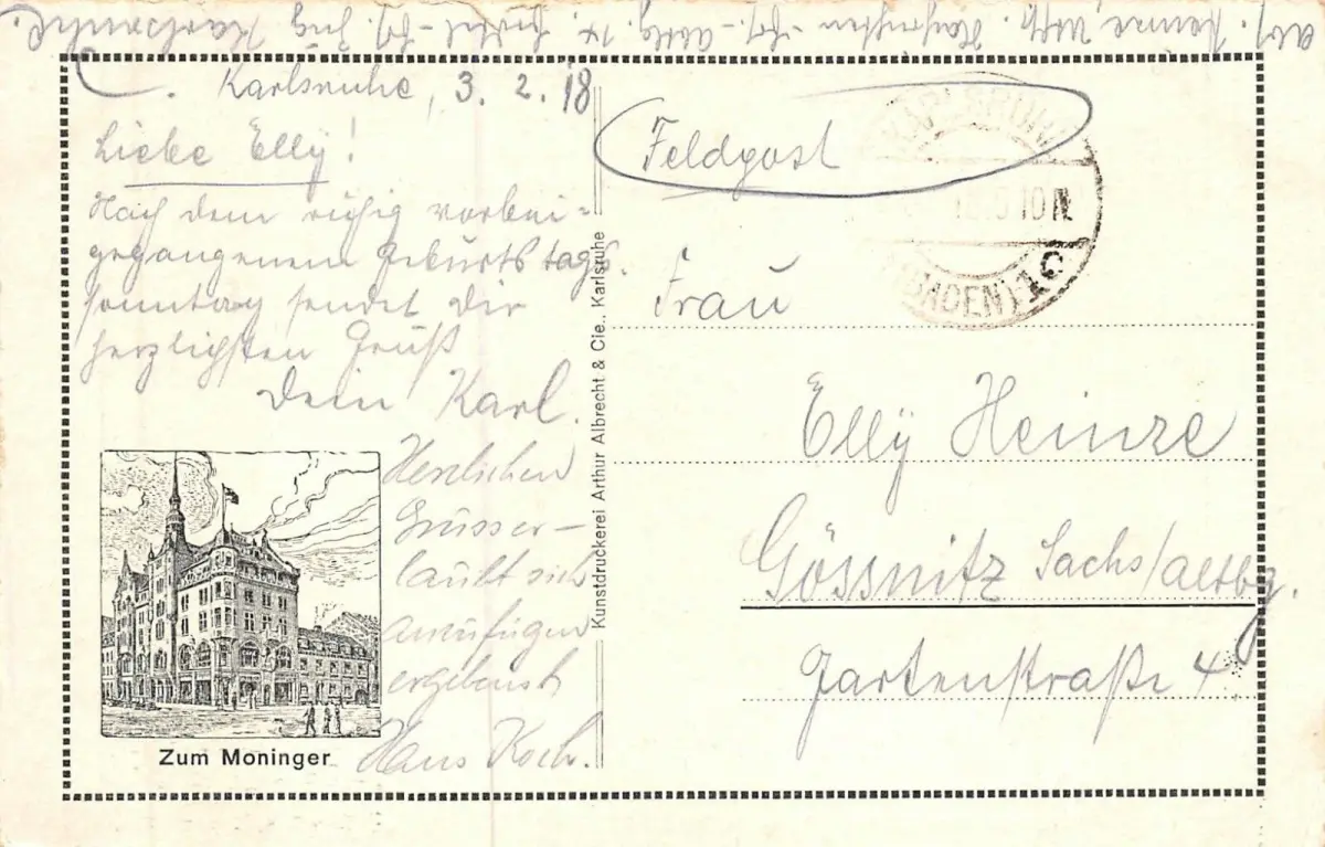 Haupt-Ausschank Wiener Kaffee Zum Moniger Karlsruhe Feldpostkarte AK 1918