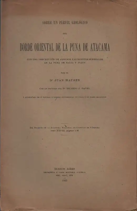 Titel: Sotre un perfil geológico del borde oriental de la Puna de Atacama con un descripción de algunos yacimientos minerales en la Puna da Salta y Jujuy. (Aus: Boletus de la Academia nacional de ciencias en Córdoba ; 28)