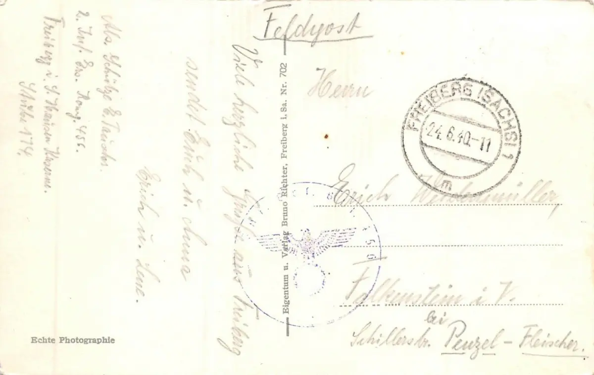 Rückseite: gelaufen 1940 von Freiberg (Sachs.)