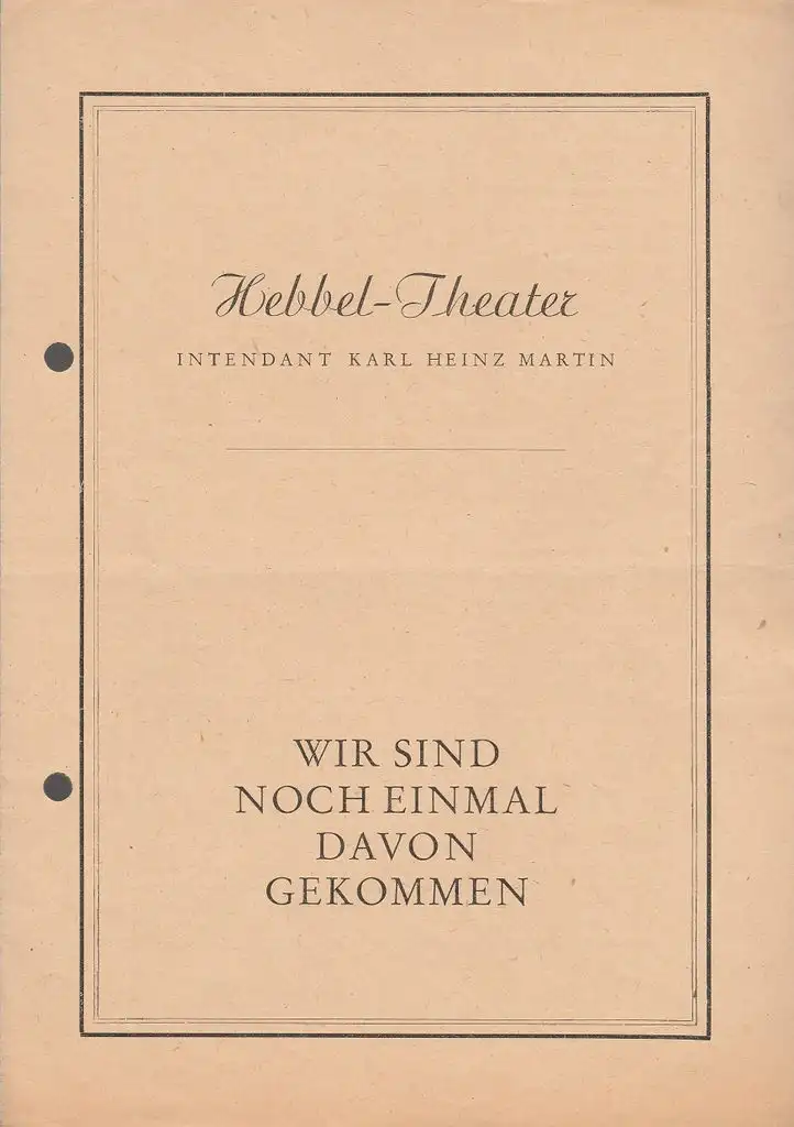 Hebbel Theater, Karl Heinz Martin: Programmheft Thornton Wilder WIR SIND NOCH EINMAL DAVONGEKOMMEN 1946.