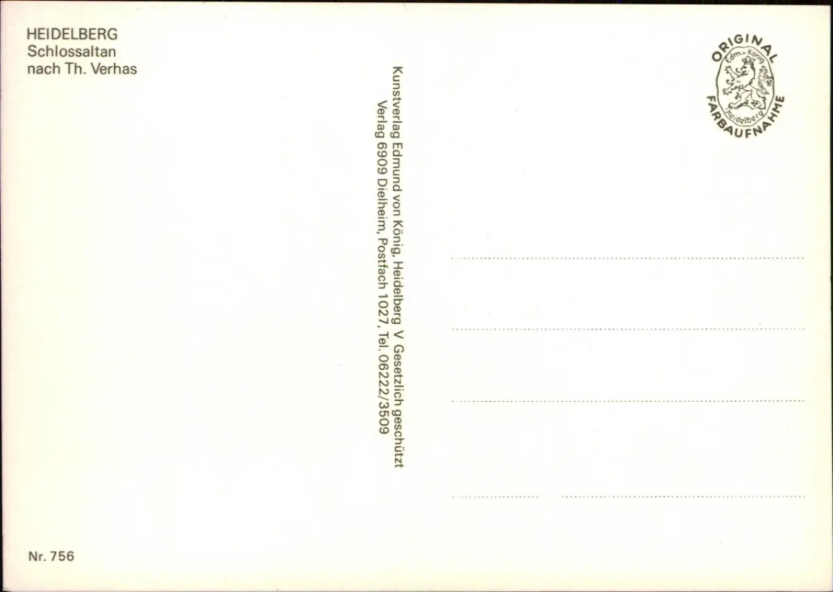 Name: HEIDELBERGER Schlossaltan nach Th. Verhas (Künstlerkarte)