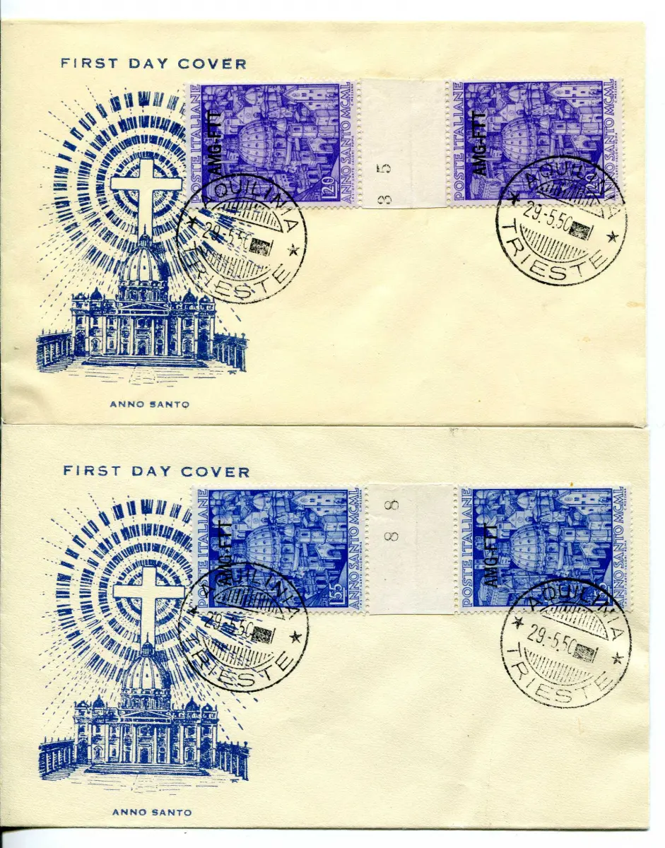 Heiliges Jahr getrennte Serie durch Zwischenraum auf Umschlägen FDC - Heiliges Jahr Nr. 73/74 zwei mittig getrennte Serien durch Gruppenzwischenraum auf zwei FDC-Umschlägen - nicht gereist - Uncommon Code 946/3