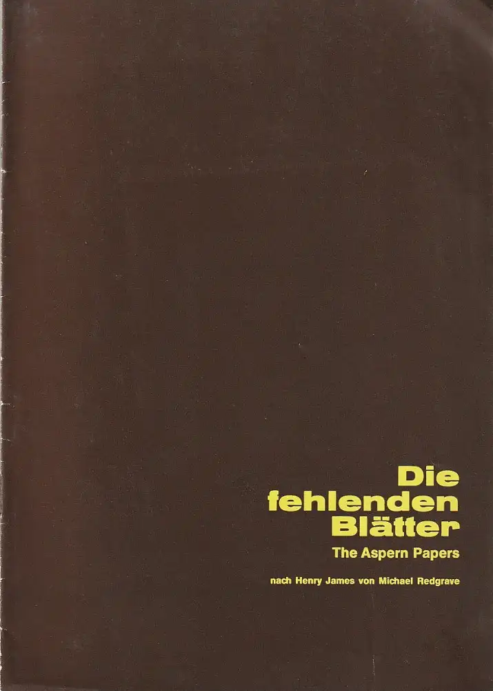 THE ASPERN PAPERS. Stück in fünf Bildern von Michael Redgrave nach der Novelle von Henry James. Ensemble-Gastspiel mit Mitgliedern des Wiener Burgtheaters und des Theaters an der Wien. Inszenierung: Josef Gielen. Bühne: Josef Bosch. Kostüme: Inge Fiedler. Mitwirkende: Josef Meinrad, Zdenka Prochazkova, Günther Lass, Helene Thimig, Käthe Gold, Augusta Ripper - Programmhefte24 - Programmhefte für Theater, Oper & Ballett.