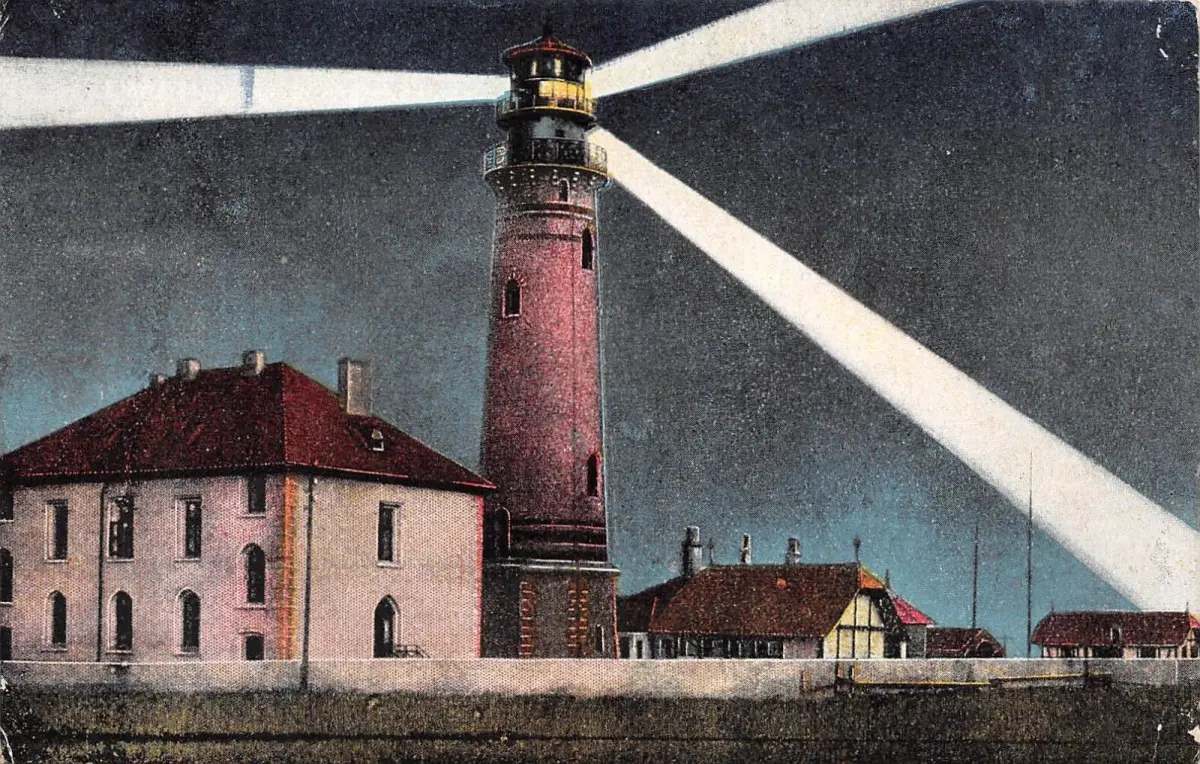 Helgoland Leuchtturm bei Nacht Postkarte AK