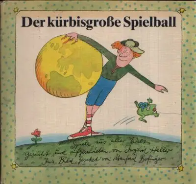 Heller, Ingrid; Der kürbisgroße Spielball; Spiele aus aller Welt; In Bild gesetzt von Manfred Bofinger; Der kürbisgroße Spielball; Basu erlebt ein Wunder; Das Gaudi mit dem Papiersackerl; Eine Maske trudelt durch die Luft; Der fliegende Kodder; Der tollkühne Jeannot; Ein Brummkreisel tanzt auf dem Seil; Der verschwundene Pfeil; Der Büvös Kocka; Impfen mit dem Löffel; Vor der Mittsommernacht; Das Indianermädchen; Das Lied der Bambusflöte; Signore Naselang in Collodi; Haie auf der Straße; Ein Kranich für Teiko Sasaki; Gefräßige Rapfen springen aus dem Wasser; Marteniza; Totem vor dem Wigwam; Kreisel springen über Steine; Juhani mit der Dreizipfelmütze; Großvater Marin spielt auf dem Dudelsack; Eine Teufelsgeige auf der Akropolis; Der Spielball kehrt zurück; Kinderbuch; Kinder; Geschichten; Erzählungen