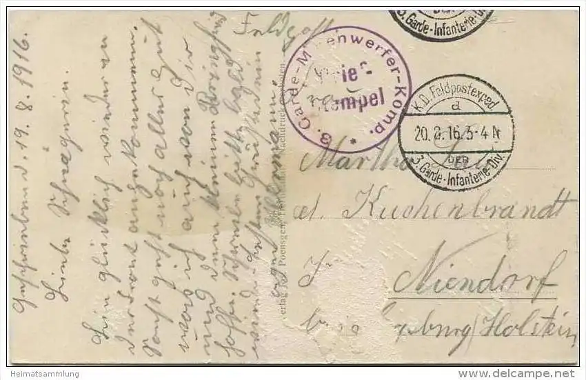 Herbesthal - Brücke über die Bahnstrecke - Strassenbahn - Feldpost Stempel 3. Garde-Minenwerfer-Komp. - rückseitig Klebestelle (E13010) gel. 1916