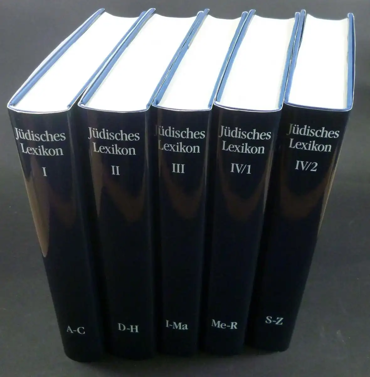 Titel: Jüdisches Lexikon. Ein enzyklopädisches Handbuch des jüdischen Wissens in vier Bänden. Unter Mitarbeit von über 250 jüdischen Gelehrten und Schriftstellern und unter redaktioneller Mithilfe von Ismar Elbogen, Georg Herlitz, Josef Meisl, Aron Sandler, Max Soloweitschik, Felix A. Teilhaber, Robert Weltsch und Max Wiener. (4 Bände in 5 Büchern) Band I: A-C. XXXVIII S., 1472 Spalten. Band II: D-H. XXXII S., 1728 Spalten. Band III: Ib-Ma. XXXI S., 1446 Spalten. Band IV/1: Me-R. XXXI, 1590 Spalten. Band IV/2: S-Z. XXXI, 1662 Spalten