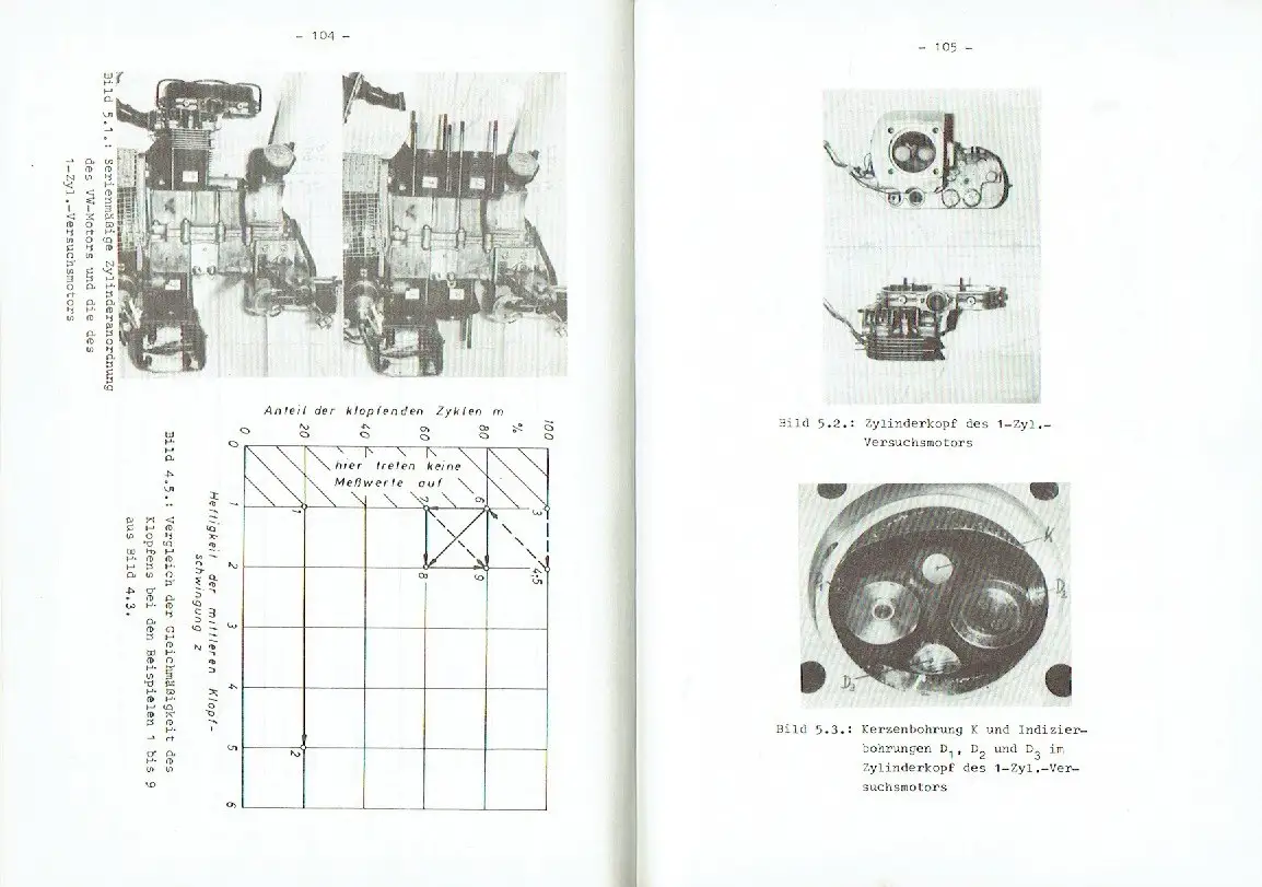 sehr guter Zustand, geringe Gebrauchs- und Alterungsspuren: Umschlag an den unteren Ecken etwas eselsohrig, Einleitung - Die subjektive Klopfgrenze - Objektive Klopfgrenzen - Apparatur zur Untersuchung des Klopfens - Bedeutung des Druckverlaufes für Klopfuntersuchungen - Beschreibung der Apparatur - Der Druckaufnehmer - Der Elektrometerverstärker - Zwischenverstärker und Hochpaß-Verstärker - Klopfen und die Druckschwingungen im Brennraum - Der Mechanismus des Klopfens - Eine Darstellung des Reaktionsablaufes bei normaler und klopfender Verbrennung - Die Auslösung des Klopfens - Die Klopfschwingung - Folgen des Klopfens - Verfahren zur Vermessung von Klopfschwingungen im Brennraum - Der Analysator - Die Meßmethoden - Prüfstand zur reproduzierbaren Einstellung eines Motor-Betriebspunktes - Motor und Bremse - Anlage zur Einstellung des Zustandes der Ansaugluft - Die Kraftstoffeinspritzung - Die Zündanlage - Das Abgassystem - Streuung der Meßergebnisse - Streuungen durch die Meßapparatur - Streuungen der Druckschwingung selbst - Motorverhalten bei klopfendem Betrieb - Einfluß der wichtigsten Betriebsparameter auf das Klopfen - Klopfverhalten der wichtigsten Betriebsparameter im m,z-Diagramm - Einfluß der wichtigsten Betriebsparameter auf den Oktanzahlbedarf des Motors - Klopfen, spezifischer Kraftstoffverbrauch und Mitteldruck - Einfluß der wichtigsten Betriebsparameter auf den Zusammenhang von Klopfen, spezifischem Kraftstoffverbrauch und Mitteldruck - Linien gleicher Klopfstärke im b - e - ,p - e - -Kennfeld - Einhüllende und Dekrementverläufe von Klopfschwingungen als Punktion der Oktanzahl - Zusammenfassung - Literaturverzeichnis - Bildteil - Lebenslauf, kartoniert, ca. 15 x 21, 139 Seiten mit zahlreichen Bildern