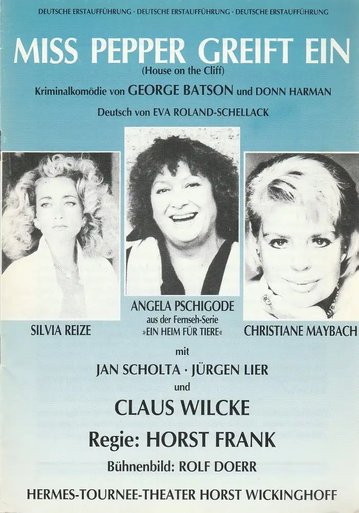 Kriminalkomödie nach dem Fernsehspiel House on the Cliff. Deutsch von Eva Roland-Schellack. Regie: Horst Frank. Bühnenbild: Rolf Doerr. Mitwirkende: Jan Scholta, Silvia Reize, Christiane Maybach, Jürgen Lier, Angela Pschigode, Claus Wilcke. - Theaterprogramm, Opernprogramm, Ballettprogramm, Musicalprogramm, Konzertprogramm, Theatermemorabilia, Programmhefte Sammlung, deutsche Theatergeschichte.