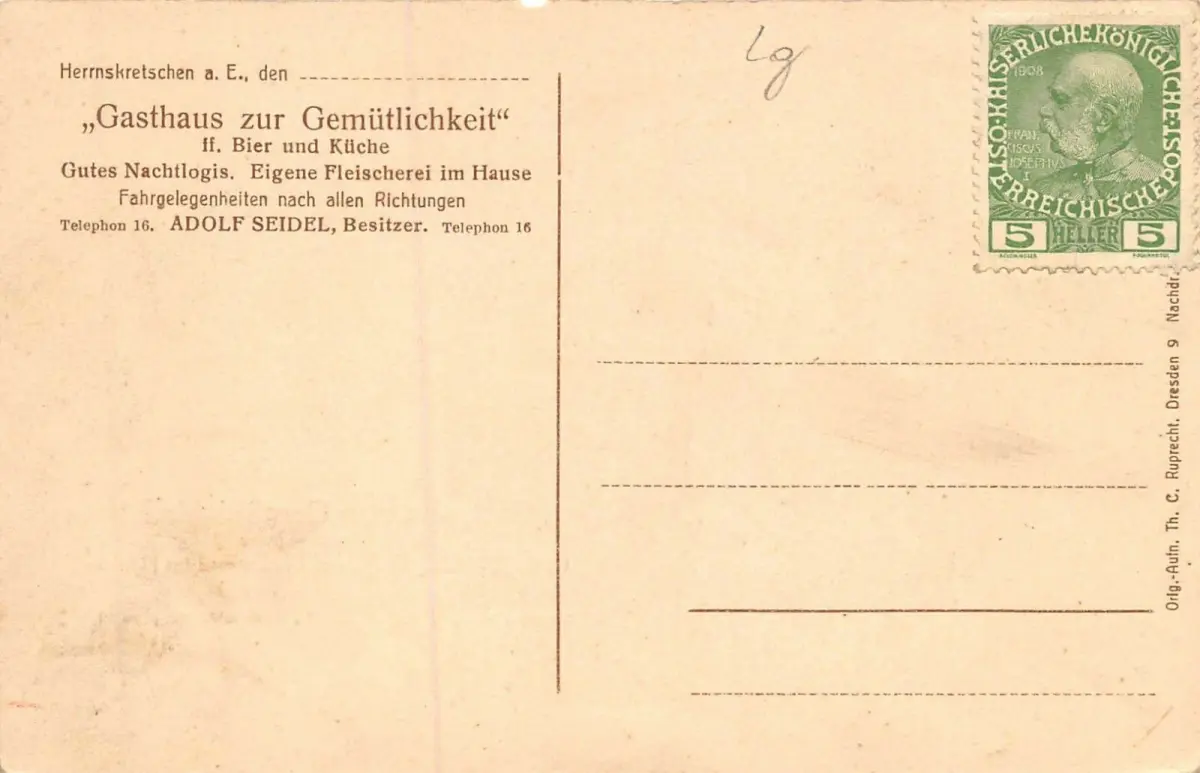 Herrnskretschen Sächs.-Böhm. Schweiz Gasthaus zur Gemütlichkeit Böhmen Postkarte