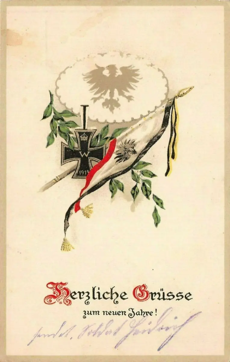 Herzliche Grüsse zum neuen Jahre ! EK2 1. WK Patriotika AK 1915