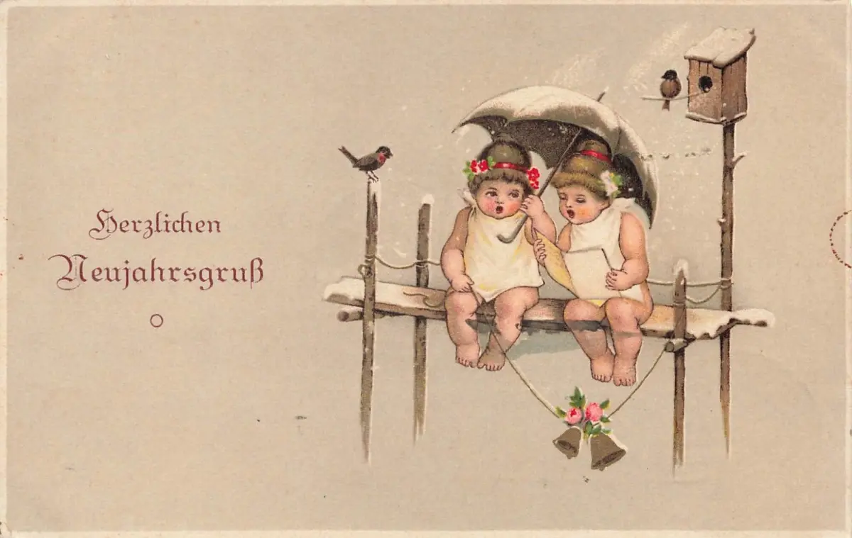 Herzlichen Neujahrsgruß Engel mit Regenschirm AK 1921