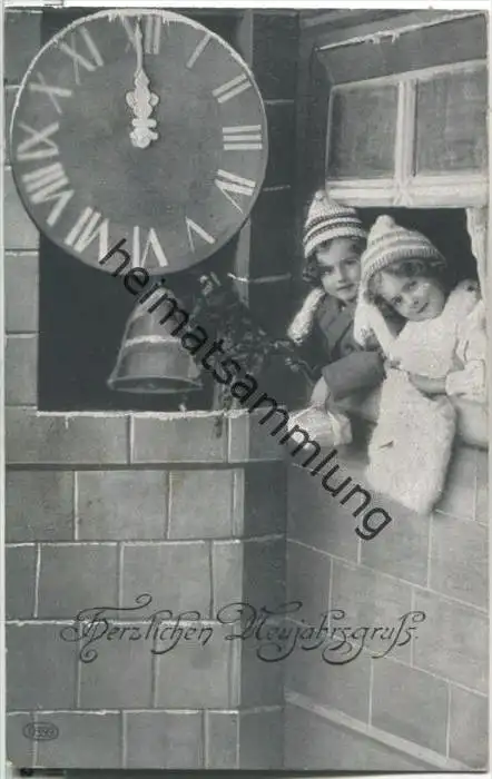 Herzlichen Neujahrsgruß - zwei Mädchen - Uhr (G38045) gel. 1917