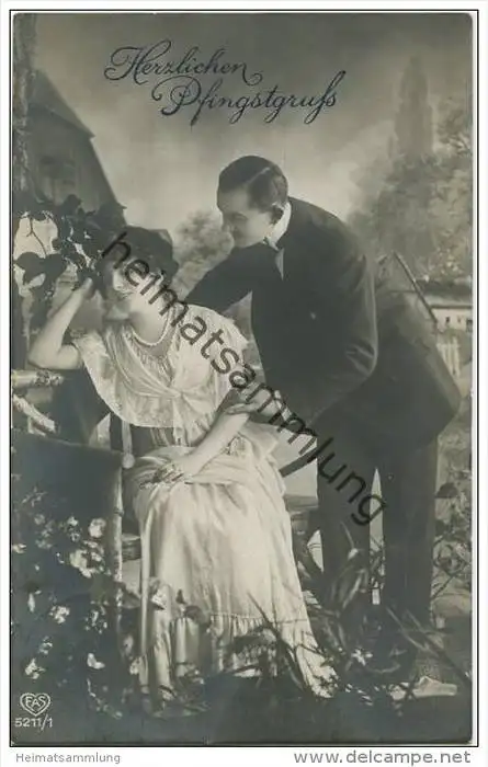 Herzlichen Pfingstgruss - Paar im Garten - EAS Verlag 5211/1 (G28802) gel. 1918