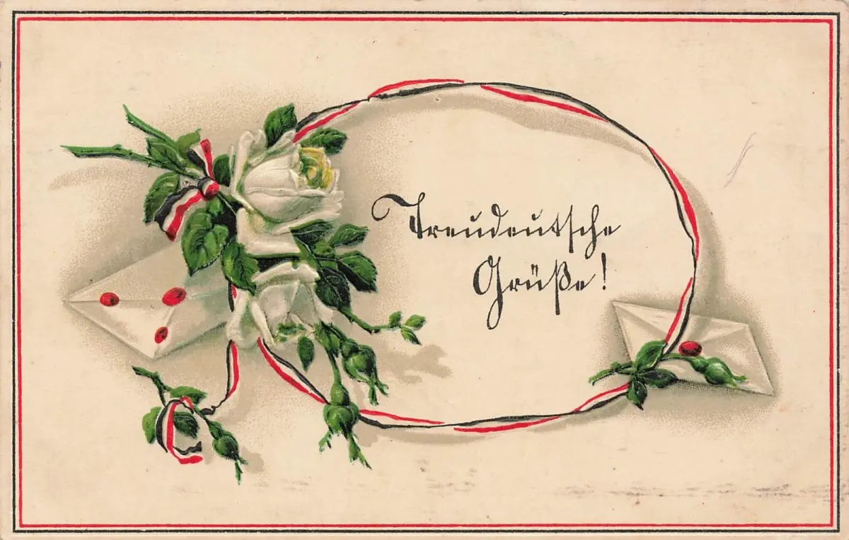 Herzlichsten Grüße! Reichsfahne Patriotika Postkarte Geprägt AK 1916