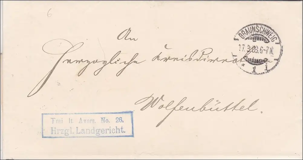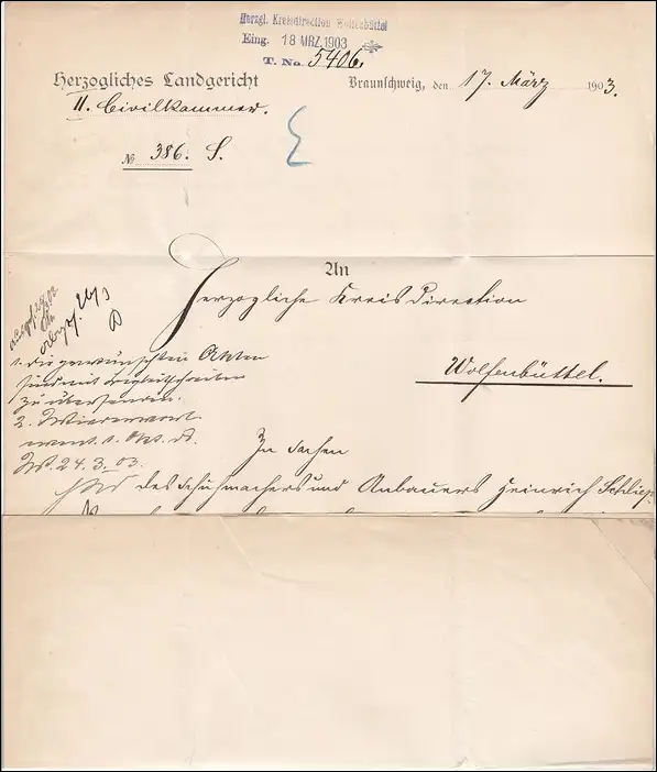 Herzogliches Landgericht Braunschweig nach Wolfenbüttel 1903