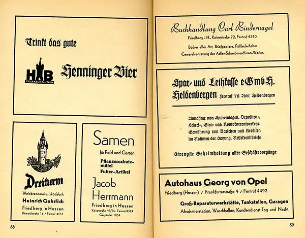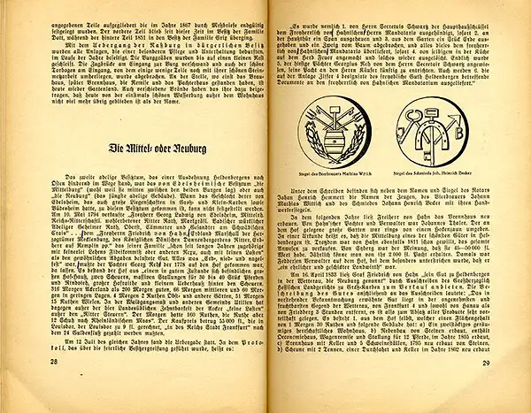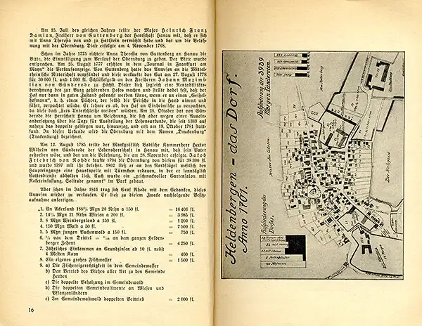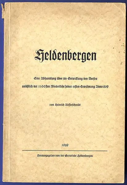 HESSEN MAIN KINZIG NIDDERAU ORTS UND HEIMATGESCHICHTE Hessen Main Kinzig Heldenbergen - Eine Abhandlung über die Entwicklung des Dorfes anlässlich der 1100 Wiederkehr seiner ersten Erwähnung Anno 839 regionalhistorische Buchausgabe von 1939 mit GESAMT 162 Seiten druckgrafischen Abbildungen Urkunde der ersten Erwähnung Grußwort Geschichte de sDorfes Heldenbergen von seiner gründung bis zur Gegenwart die Obernburg die Anlage des Dorfes nach 1701Mittel und Neuburg der Görzsche Hof Beschreibung der Gebäude die Kirche in Heldenbergen Schule Rathaus und Niddermühle ausßerdem Anzeigen und Inserate regioanle firmenudn Geschäftswerbung auf 8 Seiten \nGuter Zustand leichte Alterspuren Format 24cm x 16cm.\n Die ausgewählten Bild Beispiele haben eine unterschiedliche Auflösung was die Wiedergabe durch den Scan beeinträchtigen kann. Mobiltaugliche Galerien bei TRIXUM Bücher Papier und Dokumente deutscher Zeitgeschichte 1800-1960 Ankauf und Verkauf Besuchen Sie unser Ladengeschäft in Darmstadt Antiquariat an der Linie 3 Inhaber Stefan Jähnig Reiseführer Orts und Landeskunde Landkarten Regionalgeschichte Wirtschaft Industrie und Technik Landwirtschaft und Gartenbau Geschichte Historika Kolonien und Seefahrt Weltkrieg und Militaria Presse Zeitungen und Zeitschriften Buchkunst Exlibri Literatur und Kunstgeschichte Mode Design Werbeschriften Kataloge und Prospekte Firmenrechnung Dokumente Urkunden Oblaten Glanzbilder Reklamemarken und Vignetten Postkarten Ansichtskarten historische Photographie Sammelbilder moderne Literatur und Gegenwart Romane Erzählungen Publizistik deutsche und internationale Autoren Die Versandkosten richten sich nach den aktuellen Tarifen der Deutschen Post AG. Für ihre Anfragen und Wünsche habe ich ein offenes Ohr! Weitere Angebote finden Sie in meinem Ebay Shop Nachlass-Bearbeitung Ankauf von Büchern und Sammlungen