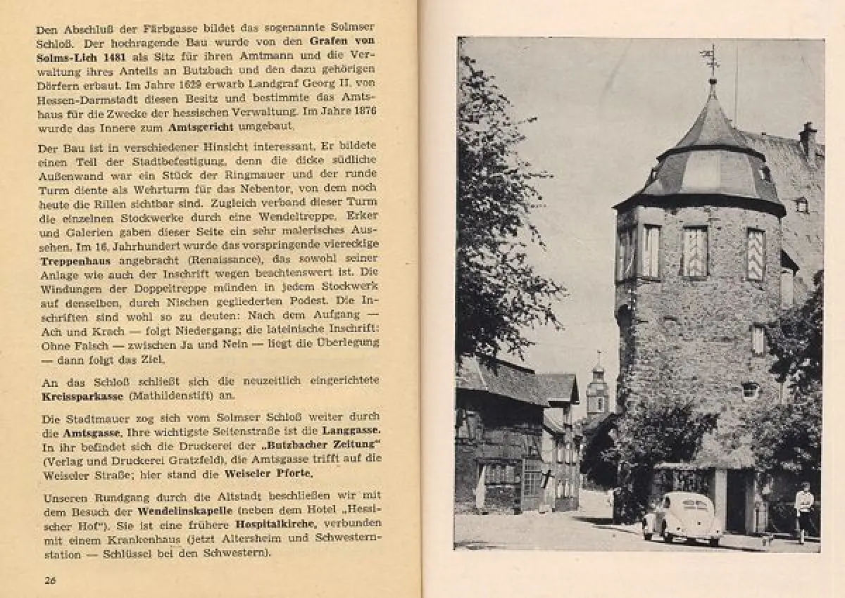 Butzbach seine Geschichte und Umgebung ein Reiseführer mit Stadtplan und Bildern regionalhistorische Buchausgabe von 1961