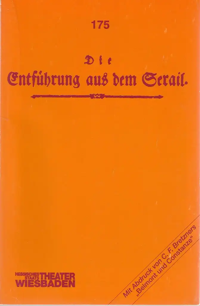 Originalbroschur, 32 Seiten Programmheft + 42 Seiten Stückabdruck BELMONT UND CONSTANZE von C. F. Bretzner. Zustand: gut, KEINE Besetzungsliste