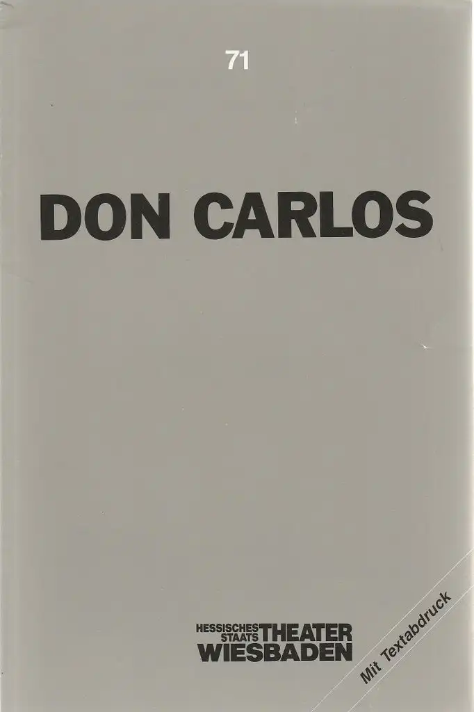 Hessisches Staatstheater Wiesbaden, Claus Leininger, Ehrhard Reinicke: Programmheft Giuseppe Verdi DON CARLOS Premiere 28. April 1990 Spielzeit 1989 / 90 Programmbuch Nr. 71.